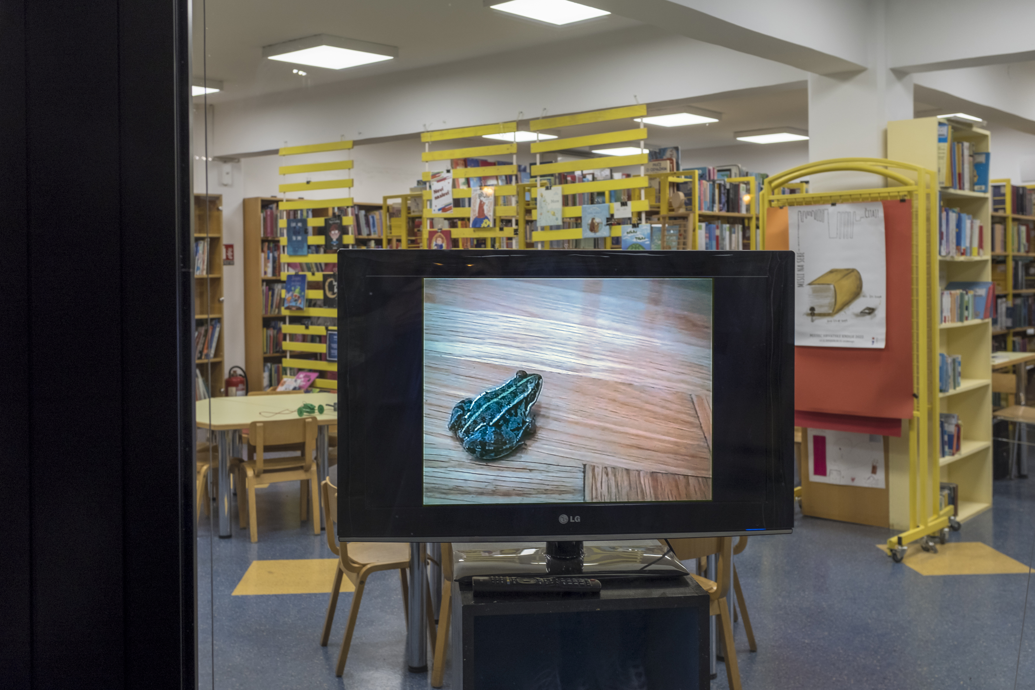 The anecdote with the boy is the starting point of the exhibition Because I Could. It contains the key points, the starting lines intertwined by the exhibition: it outlines the essence of art, it addresses dialogue with the audience, the freedom and artistic willingness to overtake this freedom. Conceived for a space that is by no means a white cube – if there is such a thing at all – it has already been deeply defined by the habitus of the library; the exhibition particularly aims at dialogue with children – since it is exactly in the relationship between art and this type of audience that communication can be re-established – and builds a spread-out communication field, questions the nature of things, the power of language, and the essence of art.