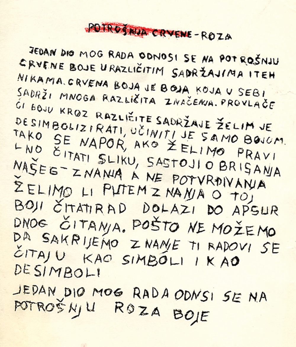 - Red at the Biennale, 1978 [I exhibited this drawing for 10 seconds at the Venice Biennale in Yugoslav pavilion on July 27, 1978]