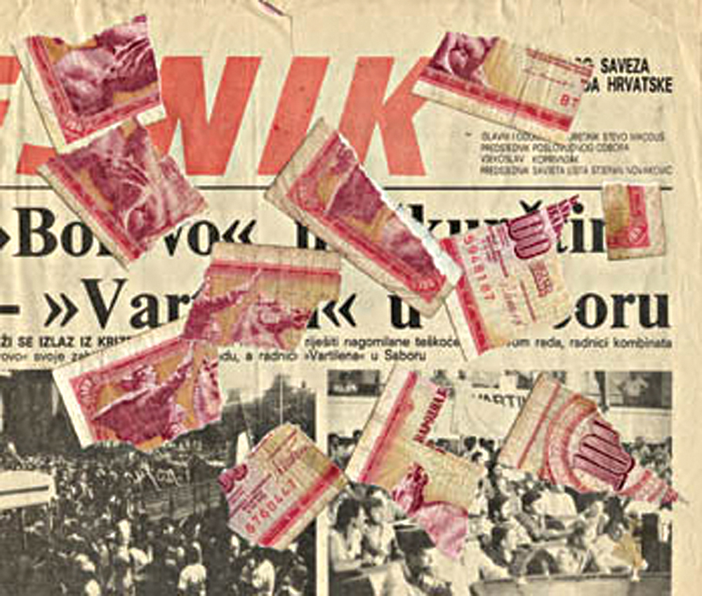 Zero as nothing, the beginning and the end, a state of immobility, in essence a non-language, incomprehensible, a monochrome. Money, the most accessible and the most comprehensible means of communication in languages. As many stories there are in money, that much is every story superfluous in zero. Zeroes are sad, absent – money is cheerful and present.