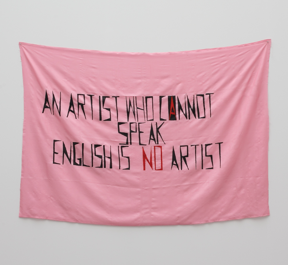 The subject of my work is the language of politics, i.e. its reflection in everyday life. These works are not just made up. I would like to paint. I paint, but the painting betrays me. I write, but the written word betrays me. The pictures and words become not-my-pictures, not-my-words, and this is what I want to achieve with my work not-my- painting. If the language (the colour, the image, etc.) is possessed by ideology, I too want to become the owner of such a language. I want to think it with consequences. This is neither criticism nor ambiguity. What is imposed to me is imposed as a question, as an experience, as a consequence. If colors, words and materials have several meanings, which is the one that is imposed, what does it mean and does it mean anything – or is it just idle run a delusion? The question is how to manipulate that which manipulates you, so obviously, so shamelessly, but I am not innocent either – there is no art without consequences.